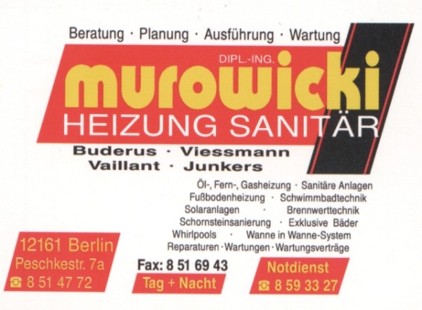 Firma: Dipl.-Ing. Murowicki Haustechnik 030/85147 72 Notdienst